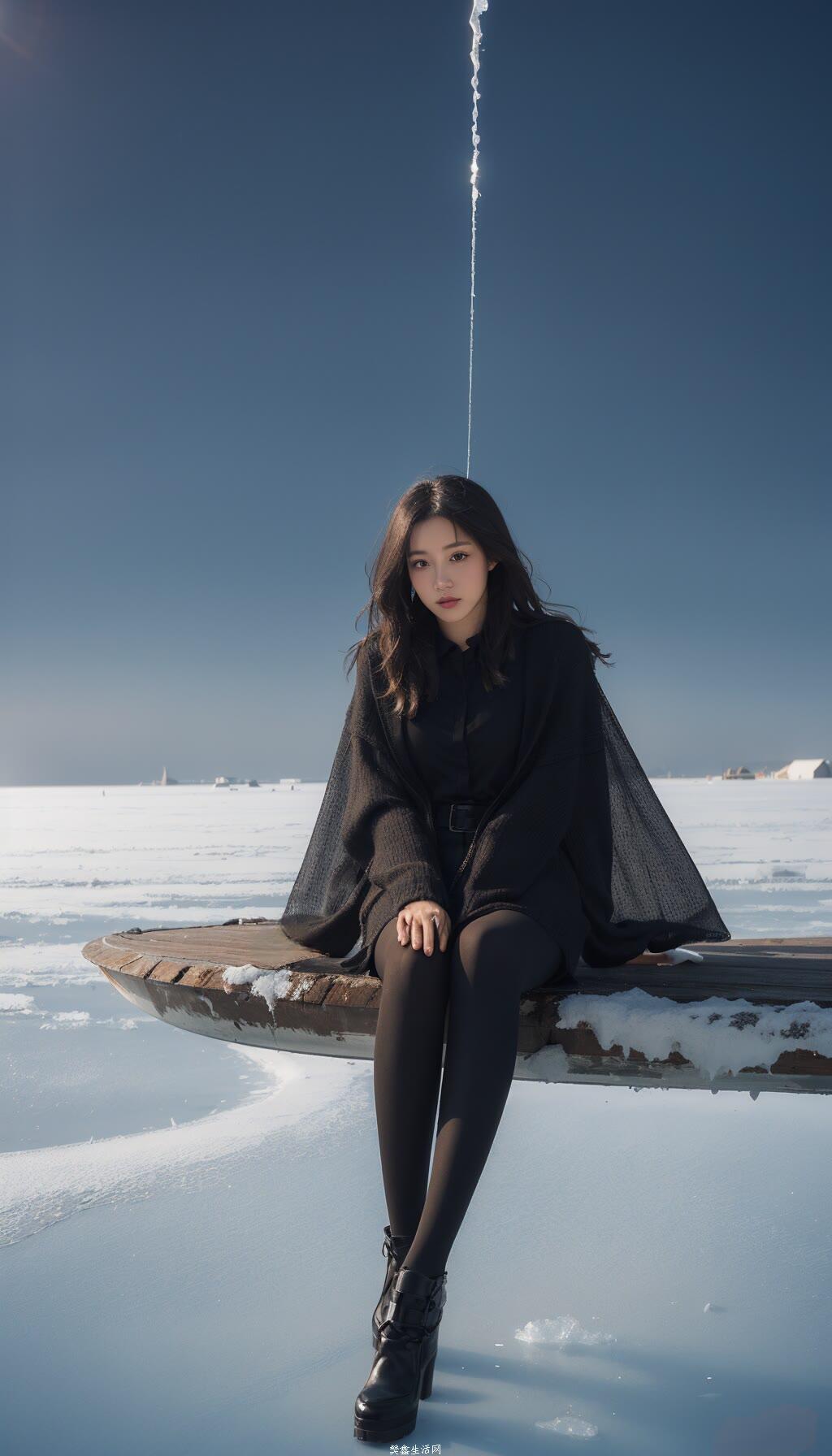奇幻少女,雪地冰山美人的独特魅力#黑丝大长腿美女
